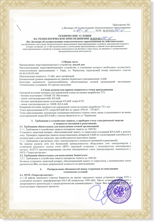 Установка ТП (трансформаторной подстанции), установка столбов под электрику, протяжка кабеля по периметру, запуск электричества