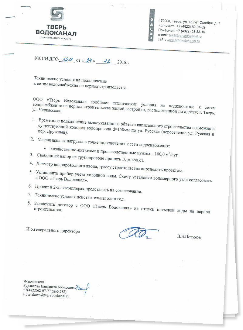 ТверьВодоканал. Все коммуникации будут подключены к городским сетям.